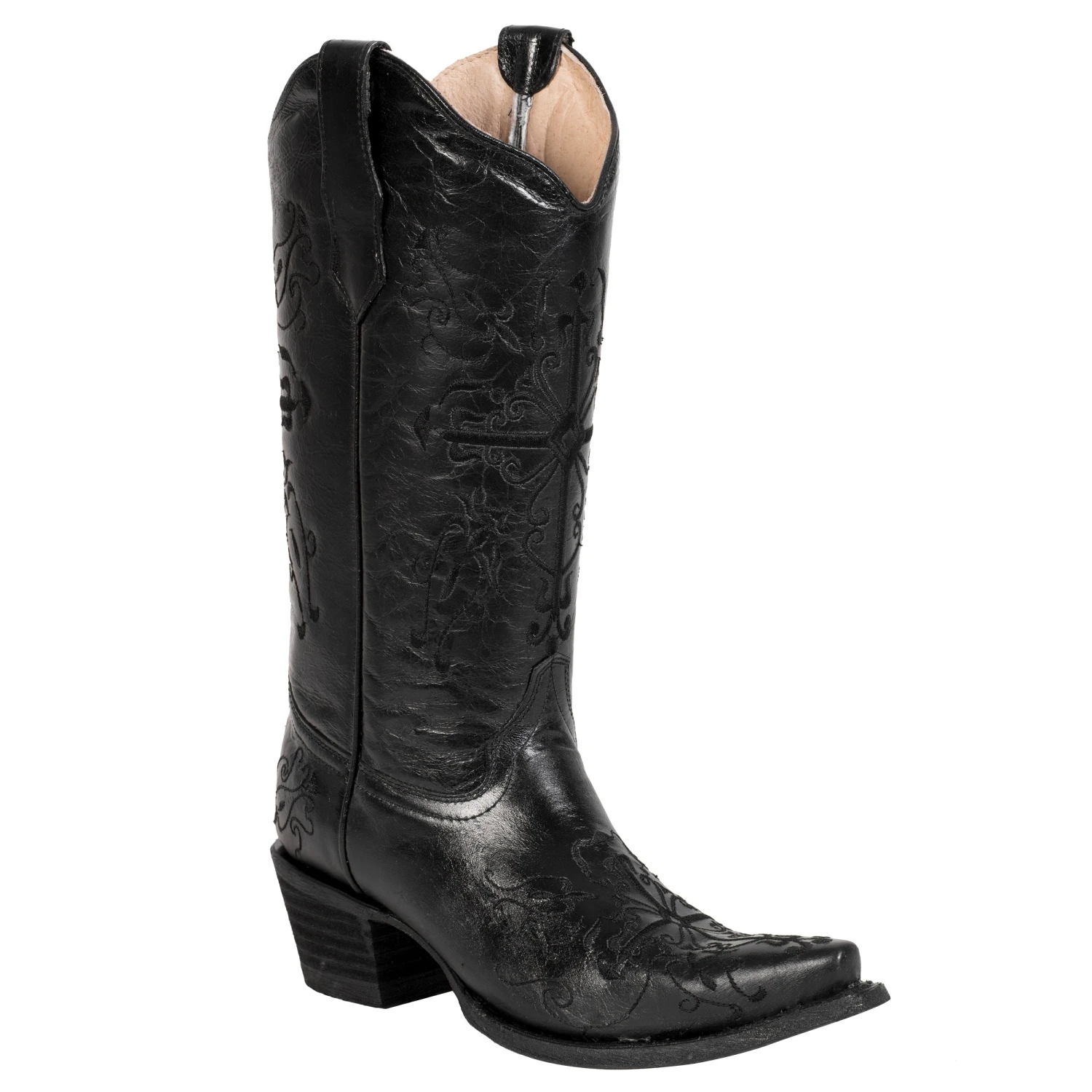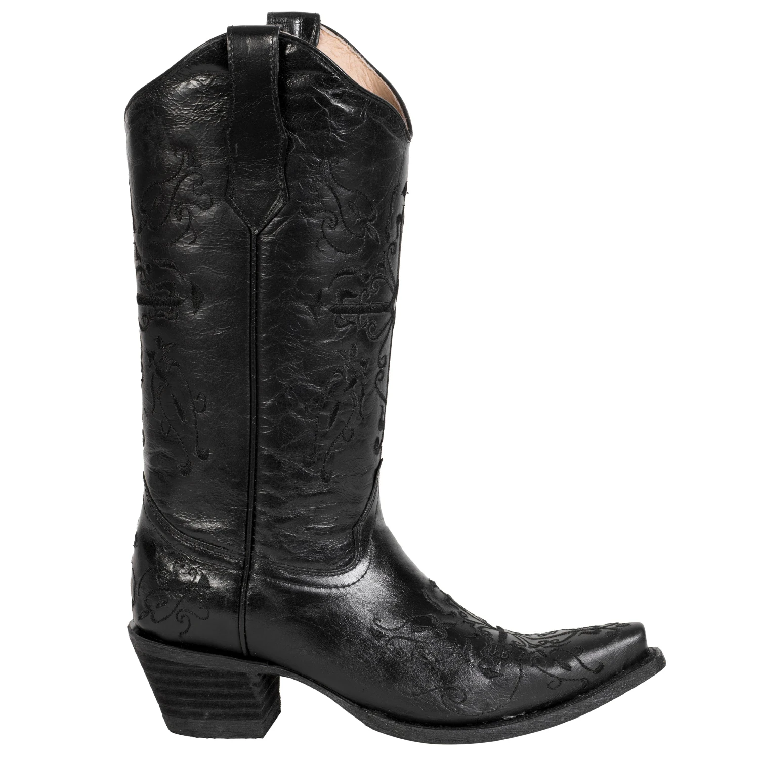 Corral Boots Corral Ladies Embroidery Black Cowhide Leather Cowgirl Boots