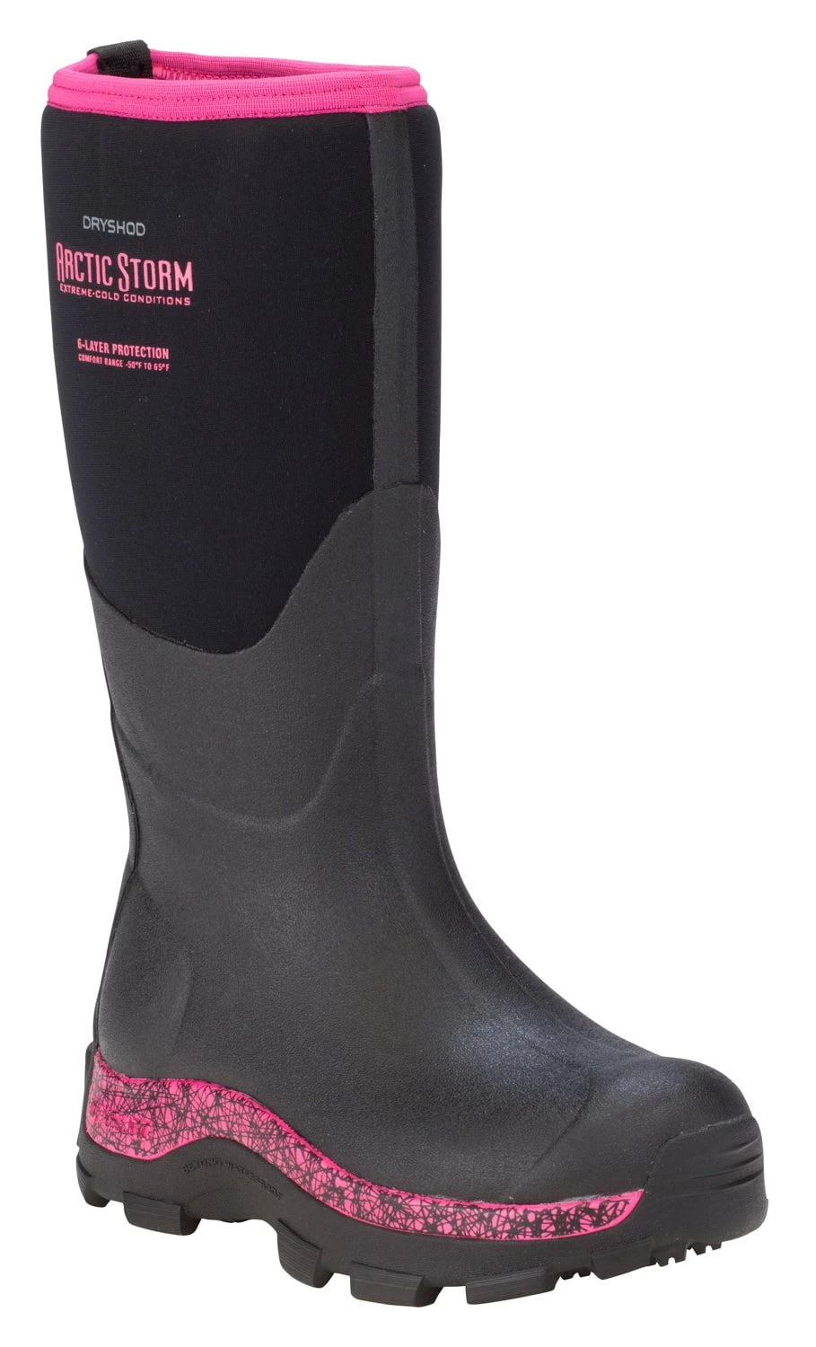 Dryshod Womens Arctic Storm Hi Black/Pink Neoprene Extreme-Cold Snow Boots