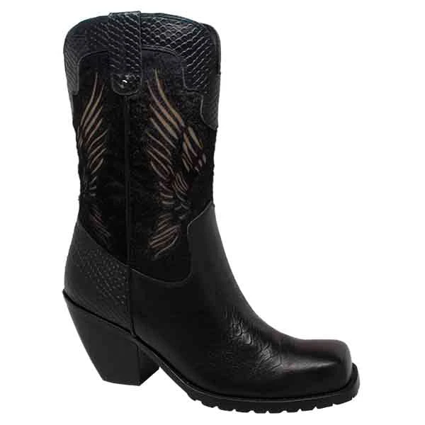 RideTecs Womens Black 11in Laser Eagle Boot Leather Motorcycle