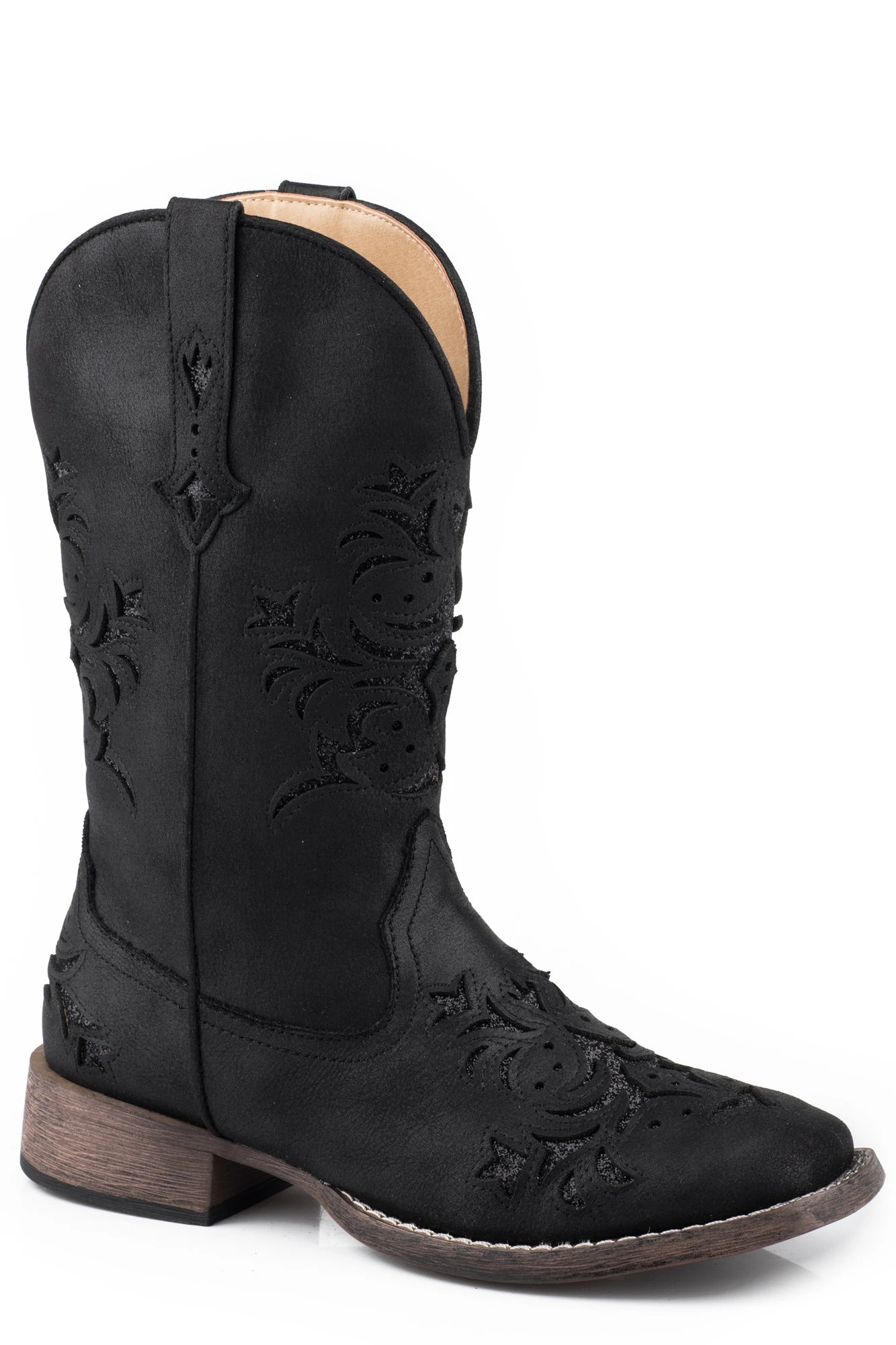 Roper Womens Black Faux Leather Kennedy Glitter Cowboy Boots