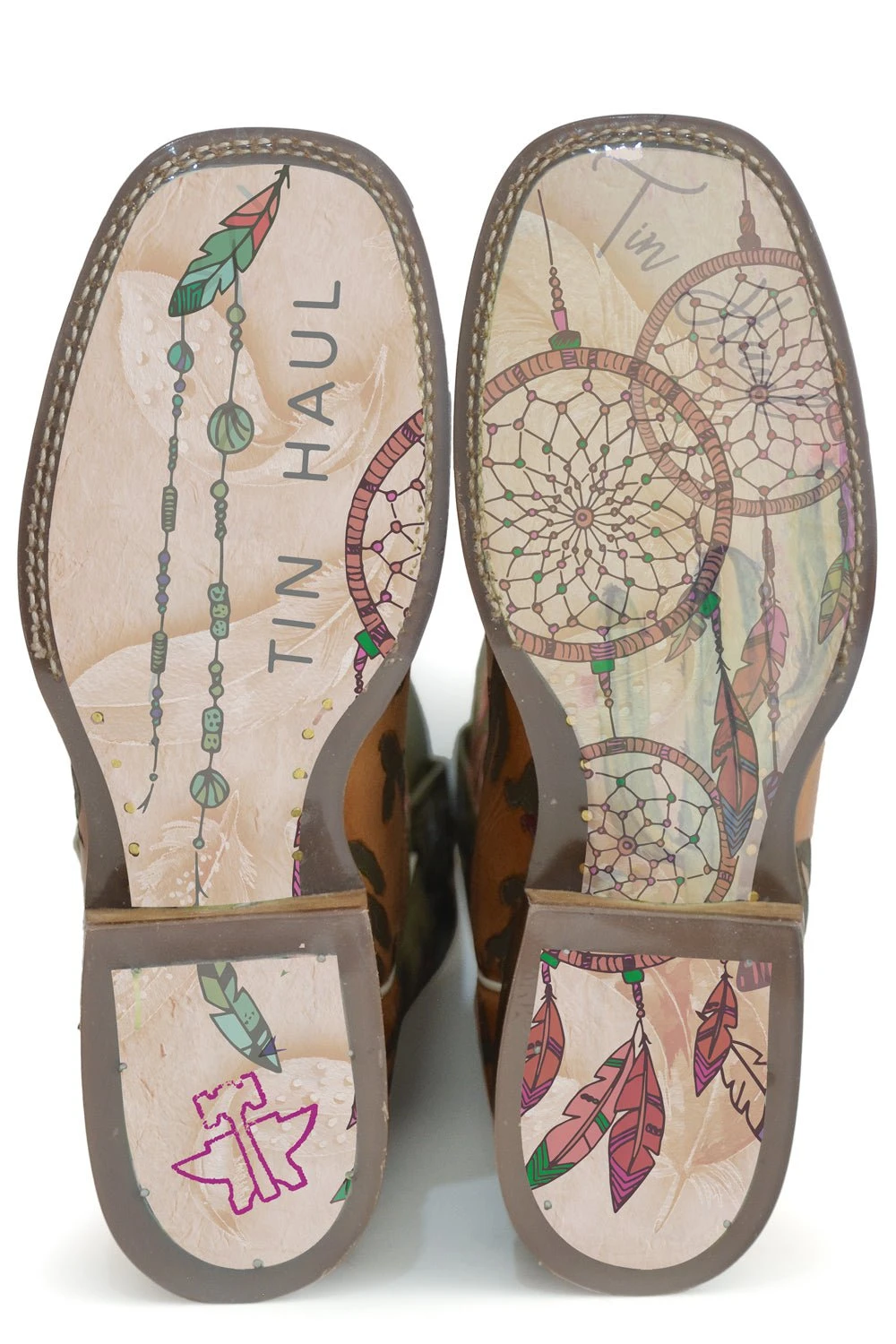 Tin Haul cowboy boots are not for the faint of heart. With a slogan of �Wear Your Metal Out,� these boots are designed to stand out from the crowd. Known for their edgy twist on traditional western boots, each style has its own unique theme. And it�s all in the details! Be sure to check out the soles of the boots, with a colorful graphic covered in a clear patented material. Strut in style with Tin Haul boots. This item features leather materials, printed cut out native leather shaft, and double welt. Made from premium quality materials, these stylish boots will add a polished look to your western wardrobe.