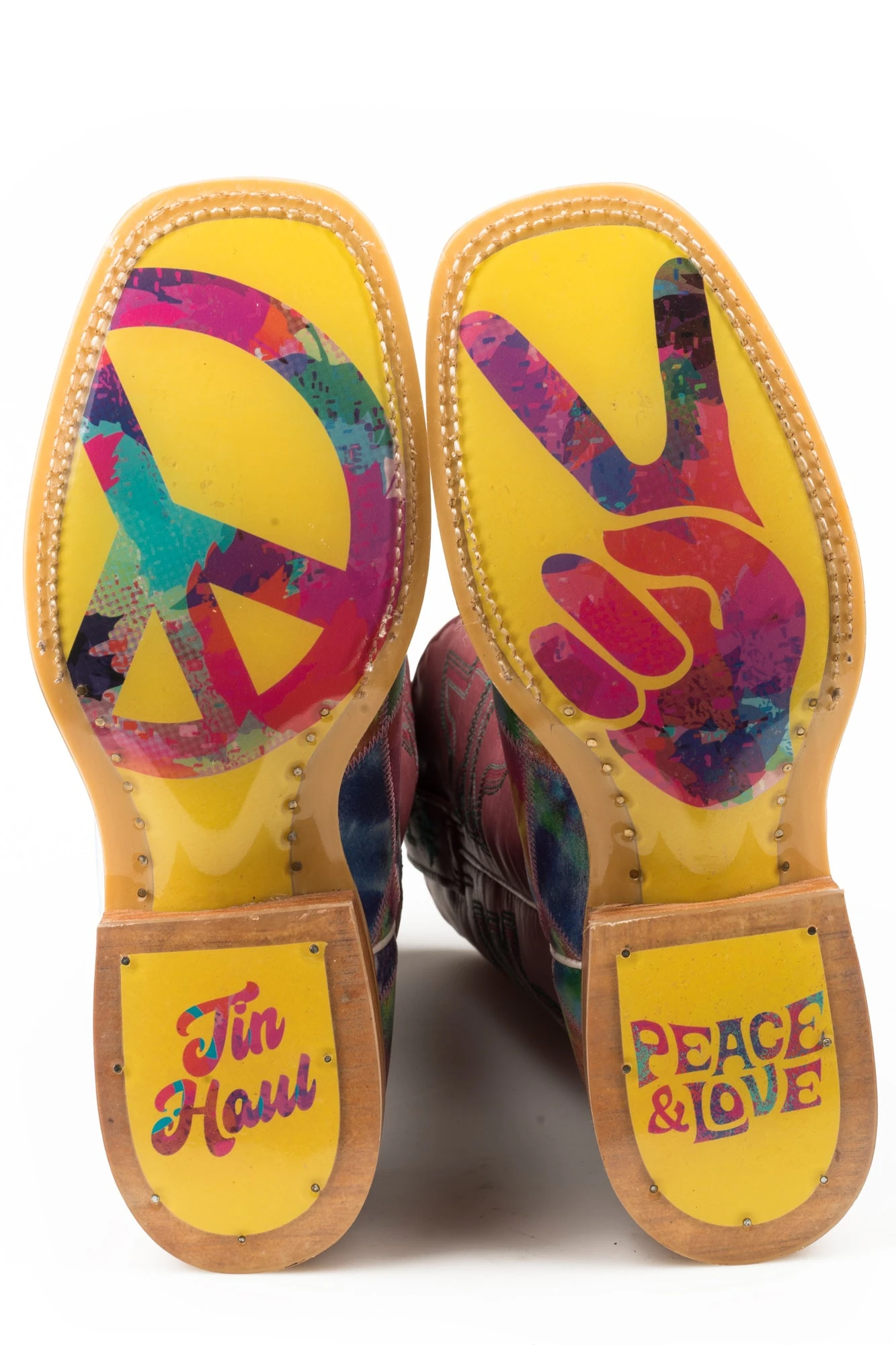 Tin Haul cowboy boots are not for the faint of heart. With a slogan of �Wear Your Metal Out,� these boots are designed to stand out from the crowd. Known for their edgy twist on traditional western boots, each style has its own unique theme. And it�s all in the details! Be sure to check out the soles of the boots, with a colorful graphic covered in a clear patented material. Strut in style with Tin Haul boots. This item features leather materials, 11in shaft, and double welt. Made from premium quality materials, these stylish boots will add a polished look to your western wardrobe.